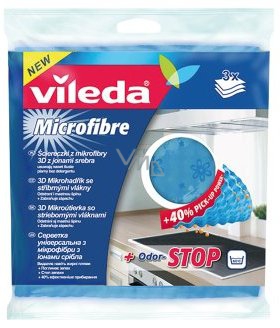3D Mikrohadřík se stříbrnými vlákny odstraní i mastnou špínu a zabraňuje zápachu. Odstraní o 40 % více částic a nečistot oproti jiným hadrům (podle laboratorních testů). Díky přírodním iontům stříbra zůstává při správném používání čerstvý. Mikrobiologická aktivita testována v nezávislém testovacím institutu.