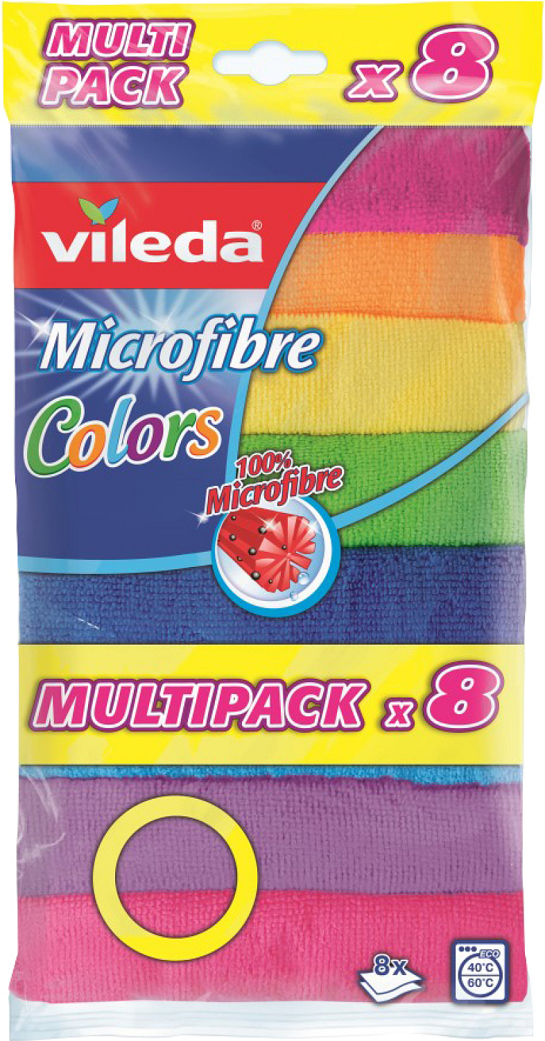 Uniwersalna ściereczka Vileda z mikrofibry może być używana na sucho lub na wilgotno. W wielokolorowym wykonaniu. Mikrofibra usuwa bakterie z powierzchni tylko za pomocą wody. Cienkie włókna mikrofibry fizycznie doskonale przylegają do powierzchni podłogi, gdzie chwytają brud i ponad 99 % bakterii i usuwają je bez konieczności użycia chemikaliów.