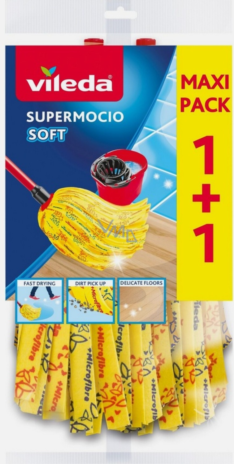 Wymienne końcówki do mopa Vileda SuperMocio Soft zapewnią Ci doskonałe sprzątanie podłóg bez wysiłku. Miękkie paski z wysoko chłonnego materiału delikatnie usuwają zanieczyszczenia i jednocześnie są łagodne dla powierzchni, dzięki czemu nadają się również do wrażliwych podłóg, takich jak laminat, parkiet czy płytki. Dzięki praktycznemu opakowaniu po 2 sztuki masz pewność, że zawsze będziesz mieć wymienną końcówkę pod ręką.