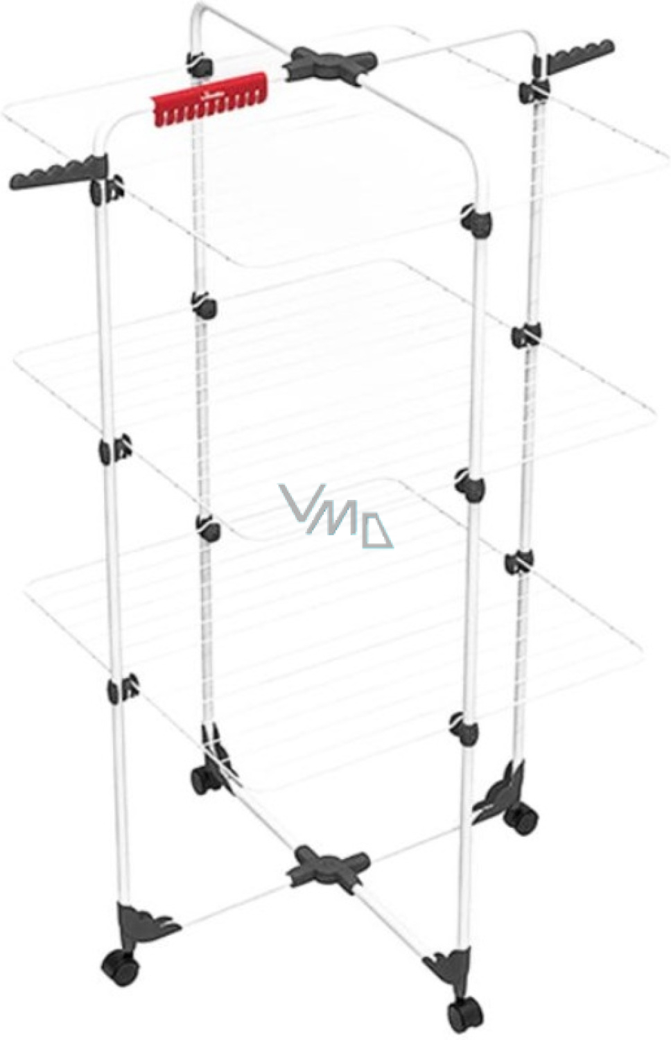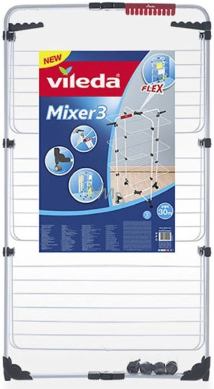 Vileda Mixer 3 jest praktyczną, trójpoziomową suszarką do ubrań z aż 30 metrami powierzchni suszenia, co odpowiada pojemności aż trzech pralek. Dzięki kompaktowej konstrukcji zajmuje minimalną ilość miejsca i można ją używać nawet w mniejszych przestrzeniach, na przykład w kabinie prysznicowej. Suszarka oferuje elastyczność dzięki 6 niezależnym rusztom, które można używać w pozycji otwartej lub częściowo złożonej dla oszczędności miejsca.