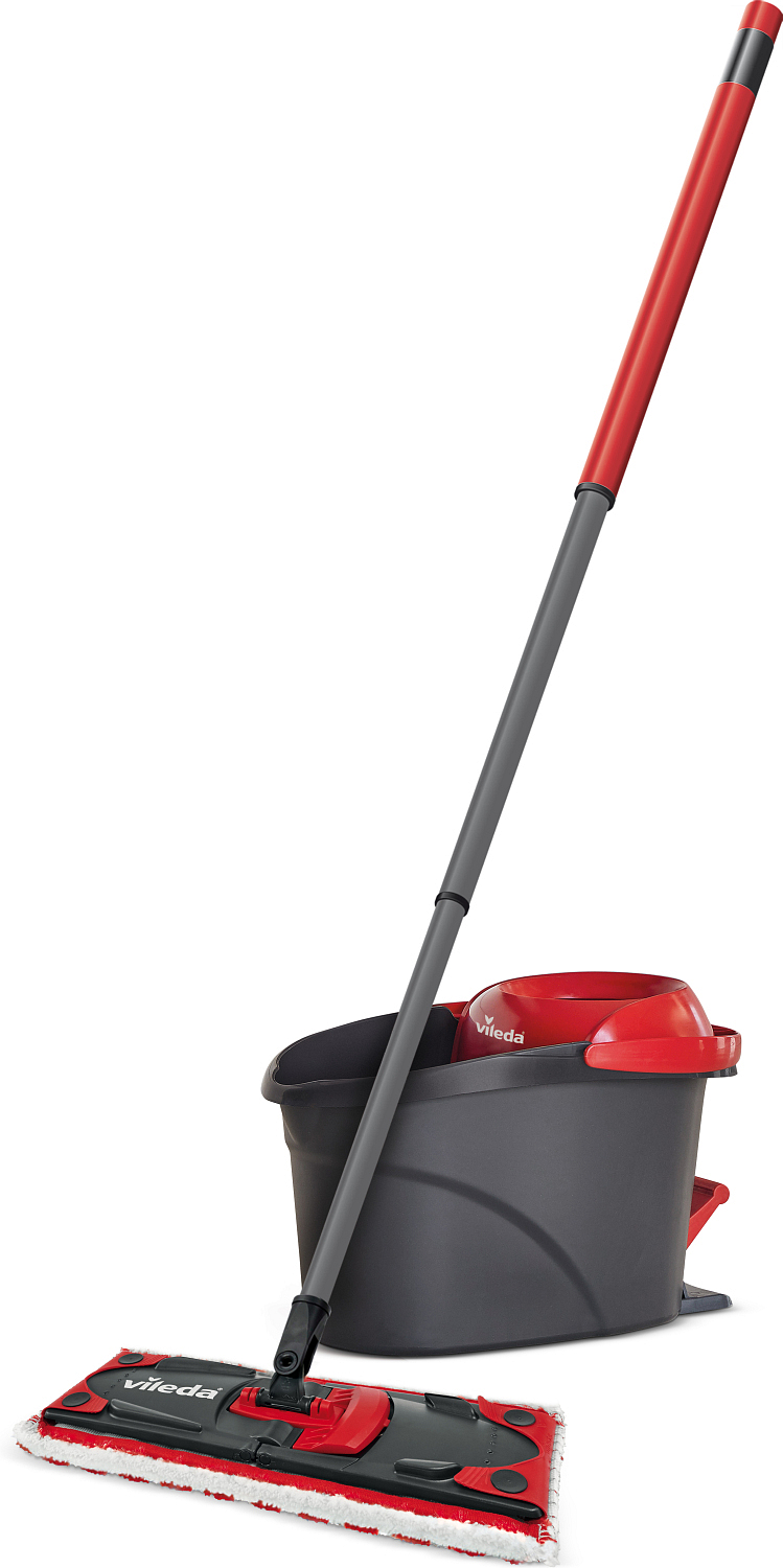 Forma wyciskacza zapobiega pryskaniu wody podczas wyciskania. Wykonany z materiałów pochodzących z recyklingu. Wysokiej jakości trzyelementowa teleskopowa rurka z regulowaną długością. Pokrowiec na mop Vileda można prać do 60°C, ale nie używaj płynu do zmiękczania ani suszarki.