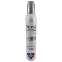 Vitale barvící pěna dodá Vašim vlasům přirozenou barvu, která vydrží až 5 umytí. Je ideální pro zvýraznění přirozené barvy. Je určená pro zvýraznění nebo (dočasné) upravení barvy vlasů. Oživuje a sjednocuje barvu barvených vlasů a vytváří zářivé odstíny také na vlasech přírodních. Maskuje první šedivé vlasy. Dodává účesu zpevnění a objem. Neoplachuje se, snadno se vymývá. Možno aplikovat po každém mytí vlasů.