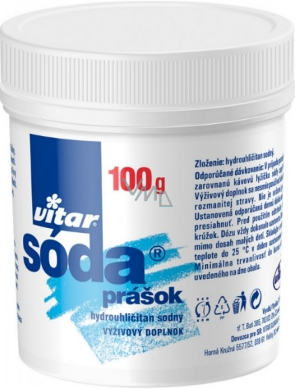 Vitar Soda to soda oczyszczona w postaci proszku, która jest stosowana jako tradycyjny środek przy zgadze, ciśnieniu żołądka i uczuciu pełności. Wodorowęglan sodu, czyli soda oczyszczona (soda bikarbonowa) to biały proszek o zasadowym działaniu. Wodorowęglan sodu stosuje się jako składnik proszków do pieczenia do wypieków oraz musujących proszków do napojów, do neutralizacji oparzeń kwasami lub do neutralizacji soków żołądkowych przy nadkwasocie żołądka, tzw. zgadze, można go również używać do wybielania zębów, do zmiany smaku potraw gotowanych w wodzie, do czyszczenia w domu oraz na wchłanianie nieprzyjemnych zapachów.