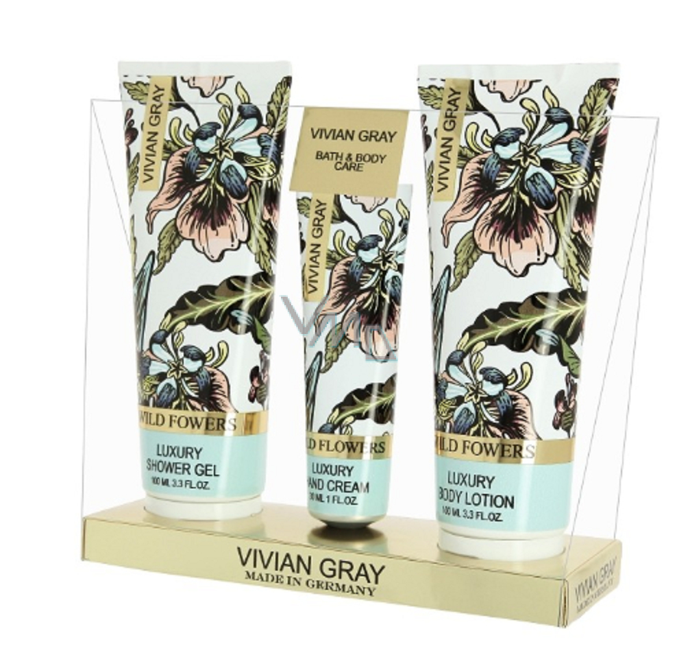 Vivian Gray Wild Flowers luxusní tělové mléko 100 ml + sprchový gel 100 ml + krém na ruce 30 ml, kosmetická sada