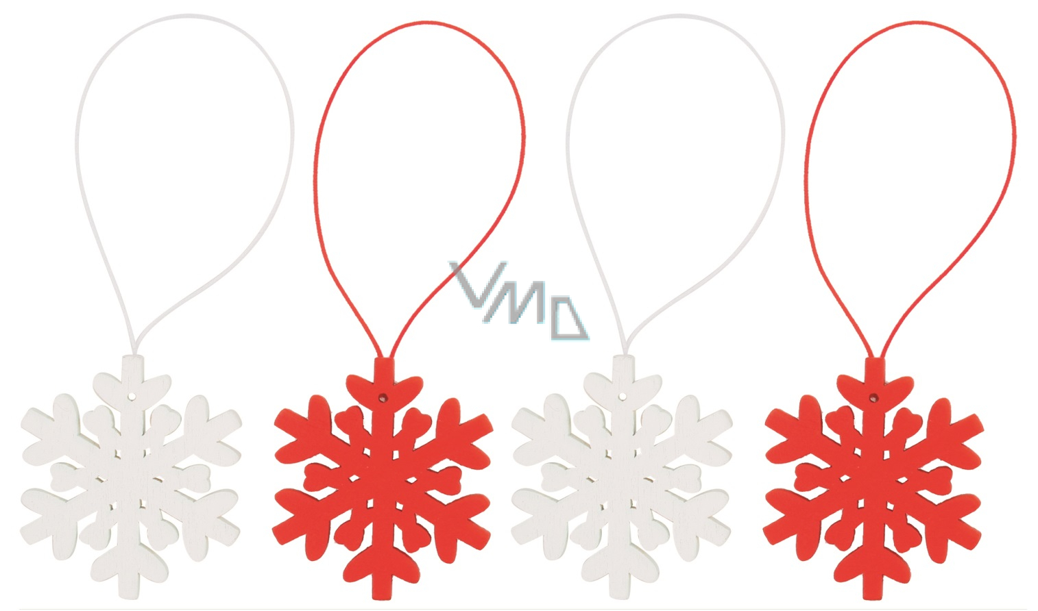 Opis Vločka dřevěná na zavěšení bílá a červená 4,5 cm 4 kusy