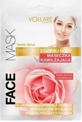 Pleťová maska hydratační s výtažkem z divoké růže. Vollaré Cosmetics hydratační maska určená pro péči o suchou a normální pokožku. Výživná emulze obohacená extraktem z divokých růží, hluboce hydratuje a dokonale vyhladí pokožku na obličeji a krku. Maska zpomaluje proces stárnutí pokožky a zlepšuje její pevnost a pružnost. Obličej je dokonale hladký, znovu získá mladý a zdravý vzhled.