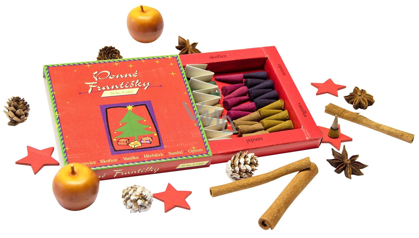 Vonné Františky 36 ks, 6 vůní - borovice, skořice, vanilka, hřebíček, sandal, opium