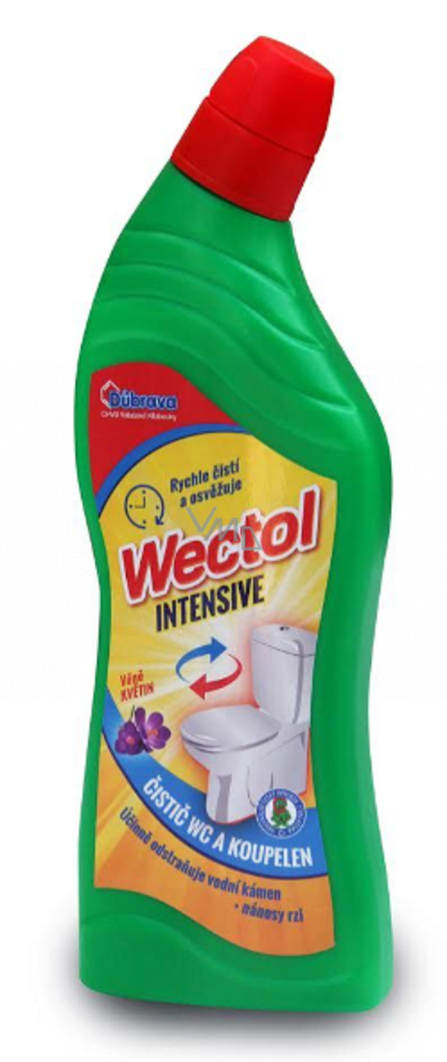 - Wectol čistí, myje a odstraňuje nánosy vodního kamene a rzi z keramických podkladů – klozetových mís, umyvadel, van, sprchových koutů, obkladů, podlah apod.