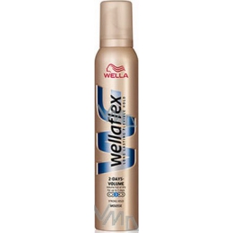 Pěnové tužidlo Wellaflex 2nd Day Volume – silné zpevnění. Pěnové tužidlo, které dodá účesu pružné zpevnění a objem plný života až po dobu dvou dnů. Systém Flex'Volume Depot obsahuje molekuly, které vytváří strukturu podobnou polštářku, které dodávají vlasům objem.