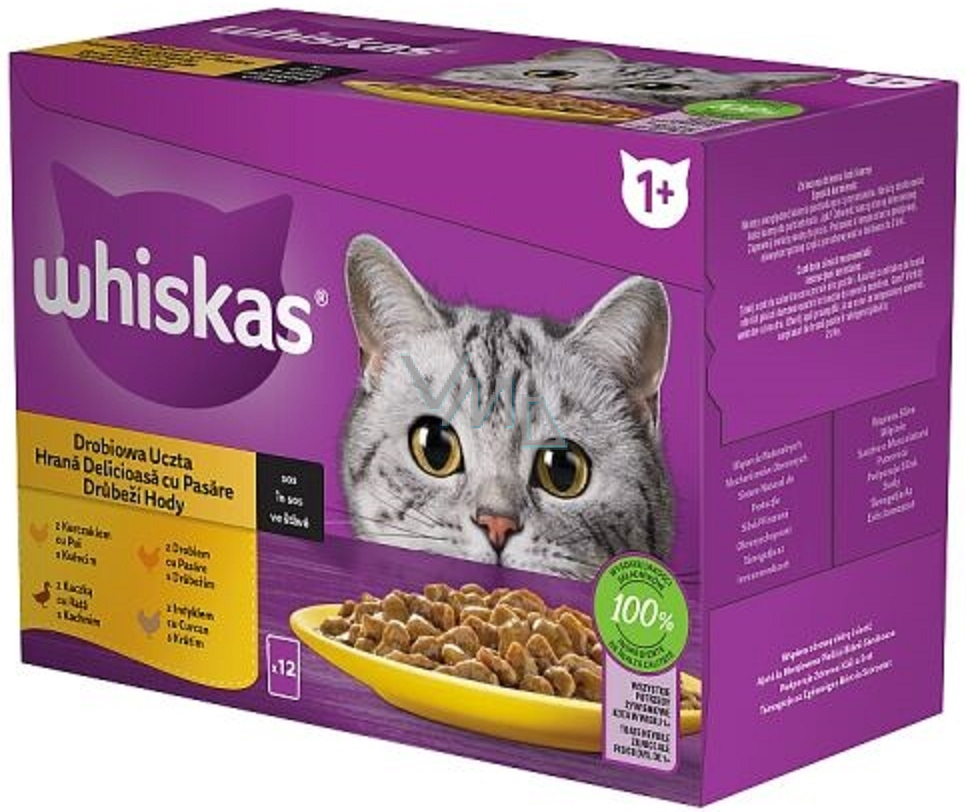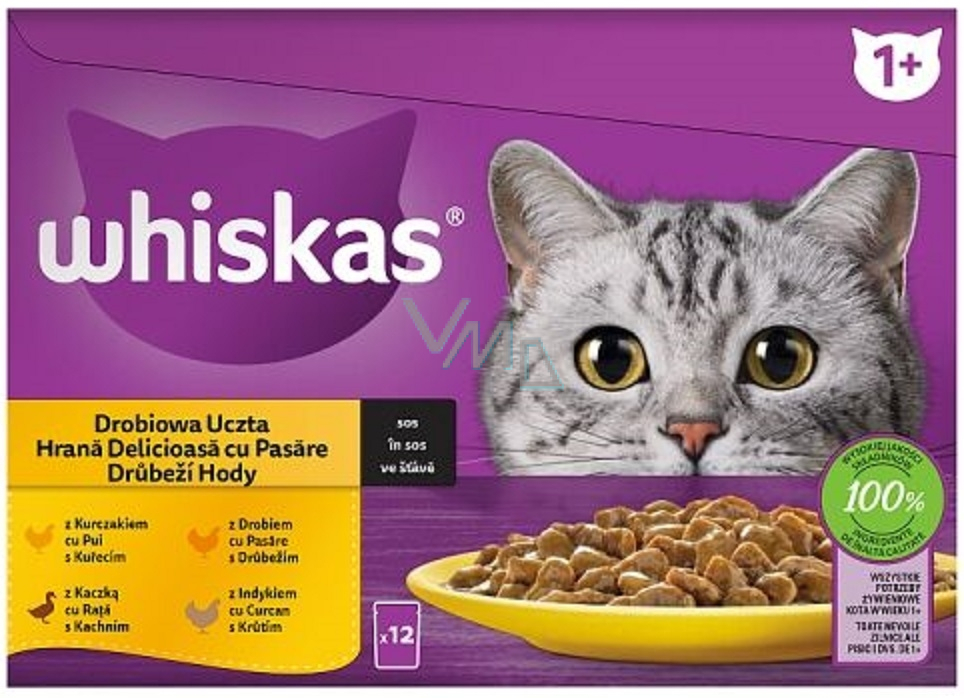 Whiskas Drůbeží hody ve šťávě kuře, kachna, drůbež, krůta kapsičky ve šťávě 12 x 85 g