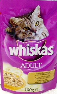 Whiskas je pečlivě připravené krmivo s obsahem všech složek výživy, které Vaše kočka tolik miluje. Nyní Whiskas přináší ty nejchutnější masové kousky v lahodné krémové šťávě pro ještě větší potěšení z krmení. Krmivo pro dospělé kočky. Krmit jedním balením na jedno krmení. Průměrná dospělá kočka (4 kg) potřebuje přibližně 3 - 4 kapsičky.
