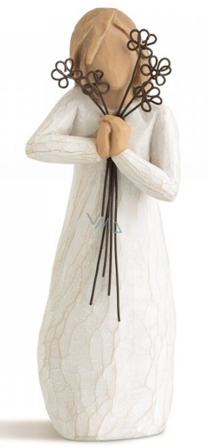 Mnoho osob přichází a odchází v životě každého z nás. Ale pouze přátelé zanechají stopu v našem srdci. Uvnitř krabičky je vložena kartička s textem "Přátelství je tím nejkrásnějším dárkem" s možností vepsat krátké osobní věnování. Andělé a figury Willow Tree jsou vyrobeny z takzvané umělé pryskyřice, je to věrná napodobenina a kopie dřeva.
