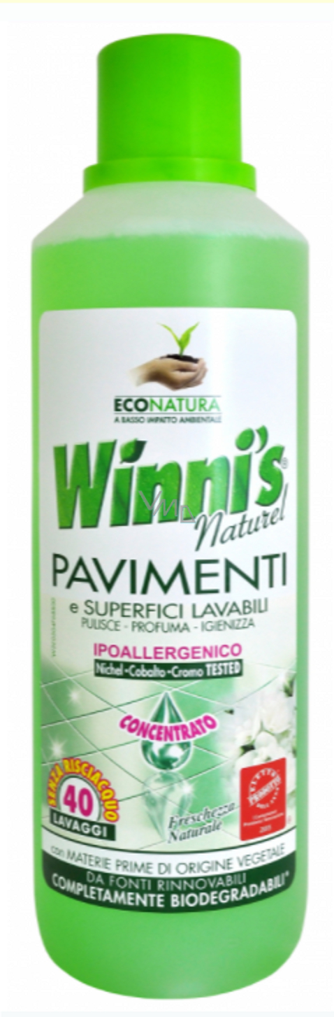 Čisticí prostředek na podlahy WINNI´S Pavimenti je vhodný na všechny typy omyvatelných povrchů, jako jsou dlaždice, plovoucí či laminátová podlaha. Kouzlo tohoto čističe na podlahy tkví v jeho postupném uvolňování vůně, která se plně aktivuje při chůzi. Pociťte tu pravou luxusní vůni při každém kroku. Prostředek WINNI´S Pavimenti má rostlinné složení, díky kterému se v přírodě snadno rozkládá, a navíc nevyvolává alergické reakce. Obal čističe je navíc recyklovatelný. Nyní můžete zažít skvělý pocit z dokonale čistých podlah bez negativních následků na životním prostředí.