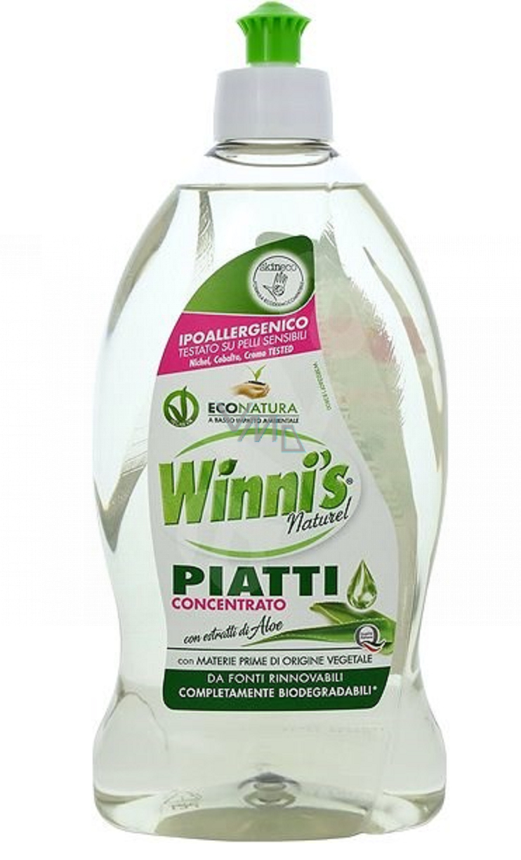 Vysoce kvalitní hypoalergenní prostředek na nádobí italské drogerie Madel Winnis Piatti. Koncentrovaný hypoalergenní mycí prostředek na nádobí s vůní aloe vera.