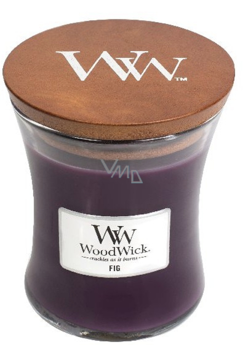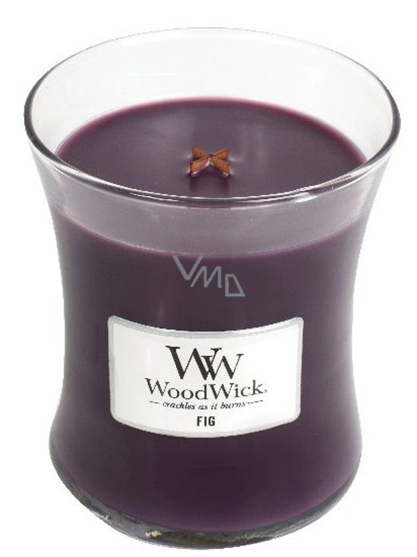 WoodWick Fig - Figa zapachowa świeca z drewnianym knotem i szklanym wieczkiem średnia 275 g