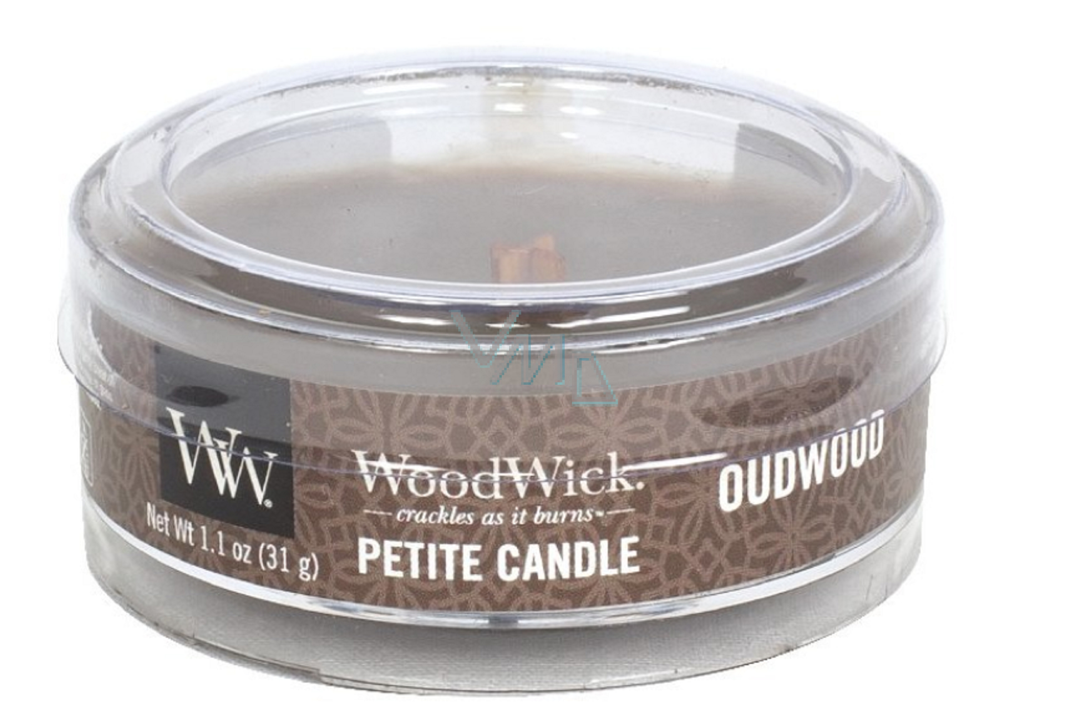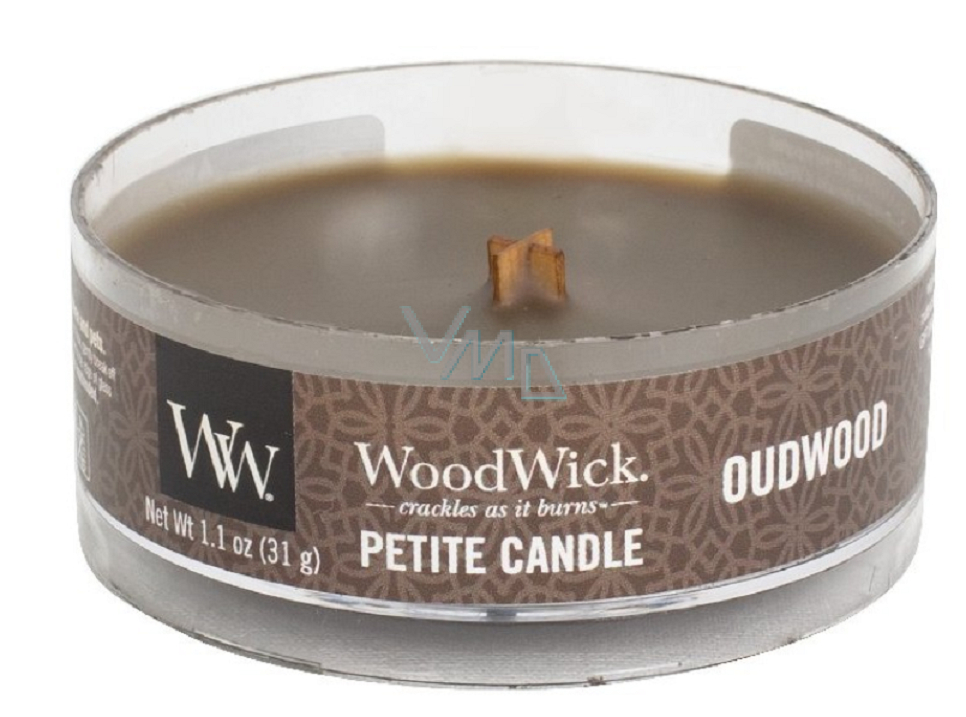 WoodWick Oudwood - Pryskyřice vonná svíčka s dřevěným knotem petite 31 g