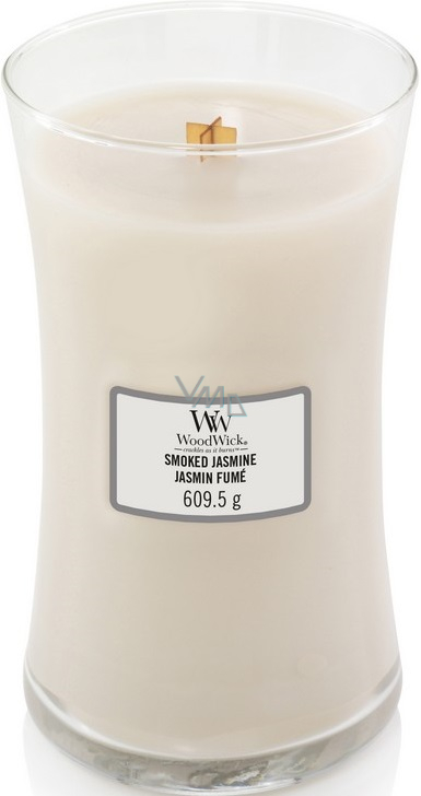 WoodWick Smoked Jasmine - Kouřový jasmín vonná svíčka s dřevěným knotem a víčkem sklo velká 609 g
