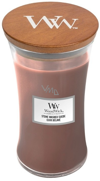 WoodWick Stone Washed Suede - Sepraný semiš vonná svíčka s dřevěným knotem a víčkem sklo velká 609 g