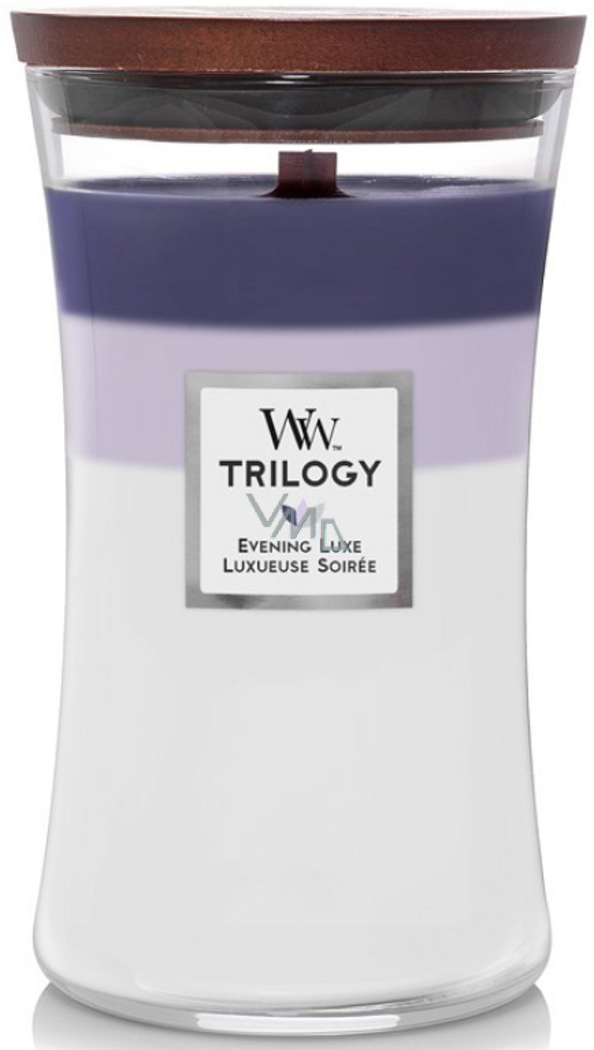 WoodWick Trilogy Evening Luxe - Večerní luxus vonná svíčka s dřevěným knotem a víčkem sklo velká 609 g