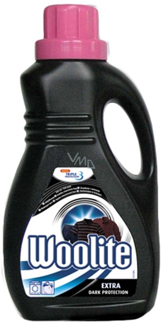 2. obarvením - Woolite obsahuje složky neutralizující uvolněné barvivo z textilií a tím pomáhá při praní chránít světlejší části oblečení před obarvením