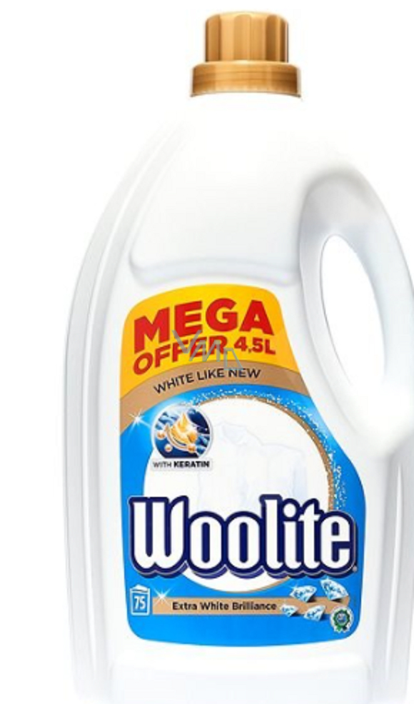 Woolite Extra White Brilliance tekutý prací prostředek na bílé prádlo. Čistí a chrání vaše oblečení proti šednutí a vyblednutí. Pomáhá udržovat oblečení déle jako nové a stále zářivé. Woolite obsahuje keratin, který obnovuje pevnost vláken. Výsledkem je čisté a zregenerované prádlo po každém vyprání.