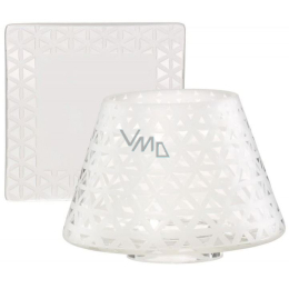 Sada malého talířku a stínítka. Hodí se na vonnou svíčku typu malý housewarmer. Chrání plamínek a zabraňuje plápolání. Plamen hoří zcela rovně, takže ze svíčky získáte maximum vonného výkonu a maximální dobu hoření, parafínová směs taje optimálně rovnoměrně.