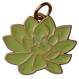 Kovový přívěsek ve tvaru zelené rostliny se zlatým lemováním na visačku do auta Charming Scents od Yankee Candle.