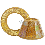 Sada skleněného stínítka a talíře Glam Mosaic s půvabnou mozaikou ve zlatavých podzimních barvách je určená pro malou svíčku Yankee Candle typu Classic se skleněným víčkem. Svíčka se s touto sadou změní na voňavou lampičku s nádherným světelným efektem. Stínítko a talíř jsou dekorativní a zároveň praktické doplňky. Talíř chrání nábytek před teplem dohořívající svíčky. Stínítko udržuje stabilní plamen a umožňuje optimální a rovnoměrné tání vosku. Ze svíčky tak získáte maximum vonného výkonu a maximální dobu hoření.