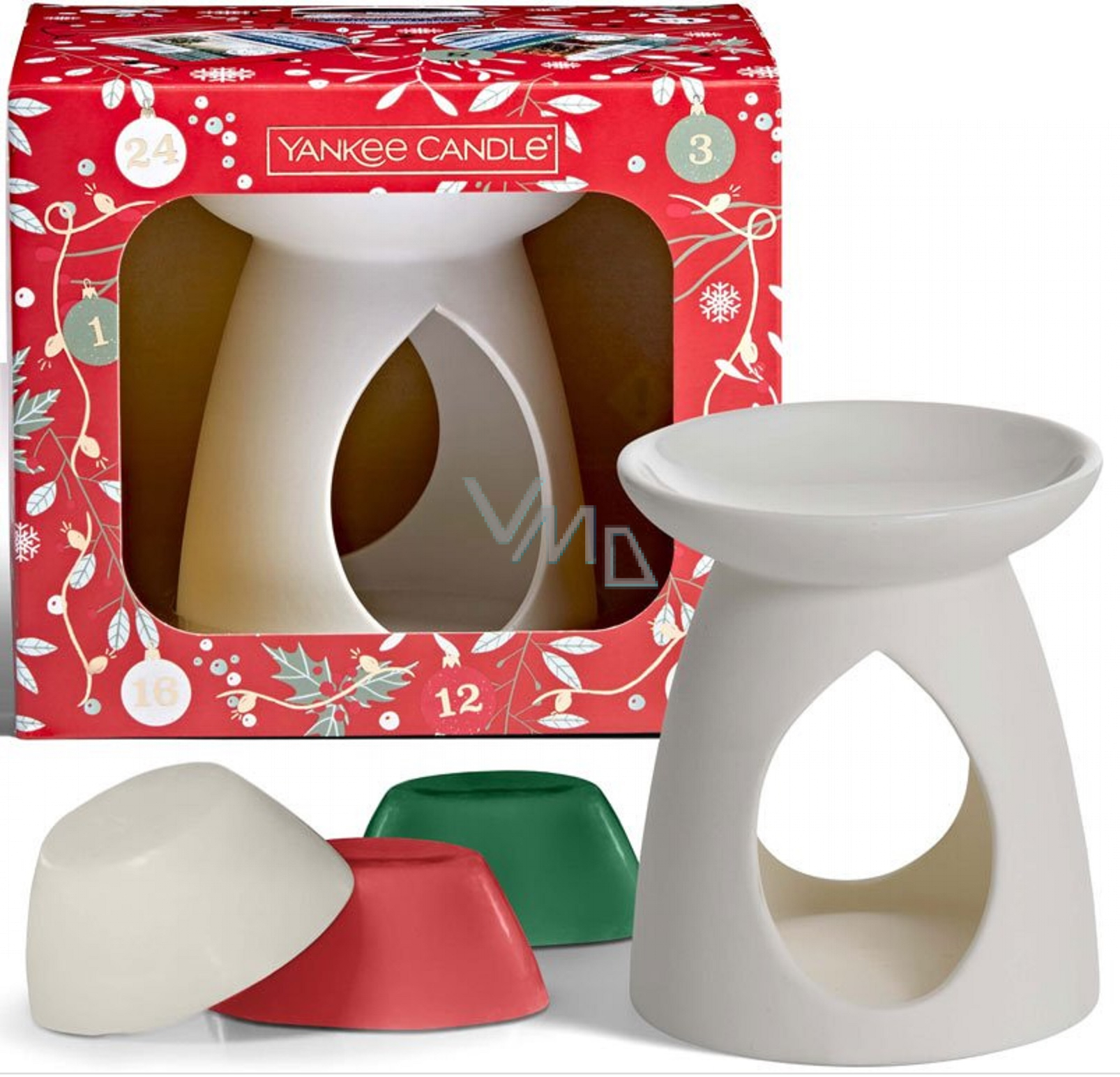 Dokonalý dárek nejen pro fanoušky Yankee Candle. Luxusní krabička zdobena vánočním motivem cesmíny a sněhových vloček vyvedeným zlatou ražbou obsahuje krásnou keramickou aromalampu nadčasového designu, která se hodí do všech typů interiérů, tři vonné vosky s vánočními vůněmi z kolekce Countdown to Christmas a jednu čajovou svíčku. Vrchní část aromalampy je dostatečně široká, takže se vosk nebo vonná esence rozpustí na velké ploše a interiér je rychle a sytě provoněn.