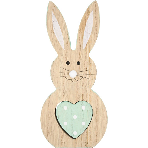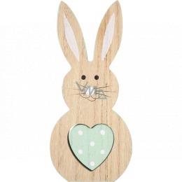 Drewniany zajączek z mentolowym sercem o wielkości 16 cm na przykład ożywi w wasz dom w wiosennym i wielkanocnym okresie.