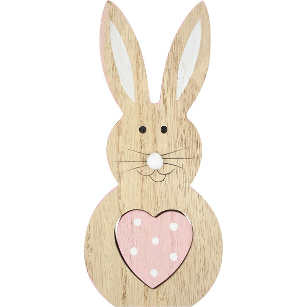 Drewniany zajączek z różowym sercem o wielkości 16 cm naprawdę ożywi w wasz dom w wiosennym i wielkanocnym okresie.