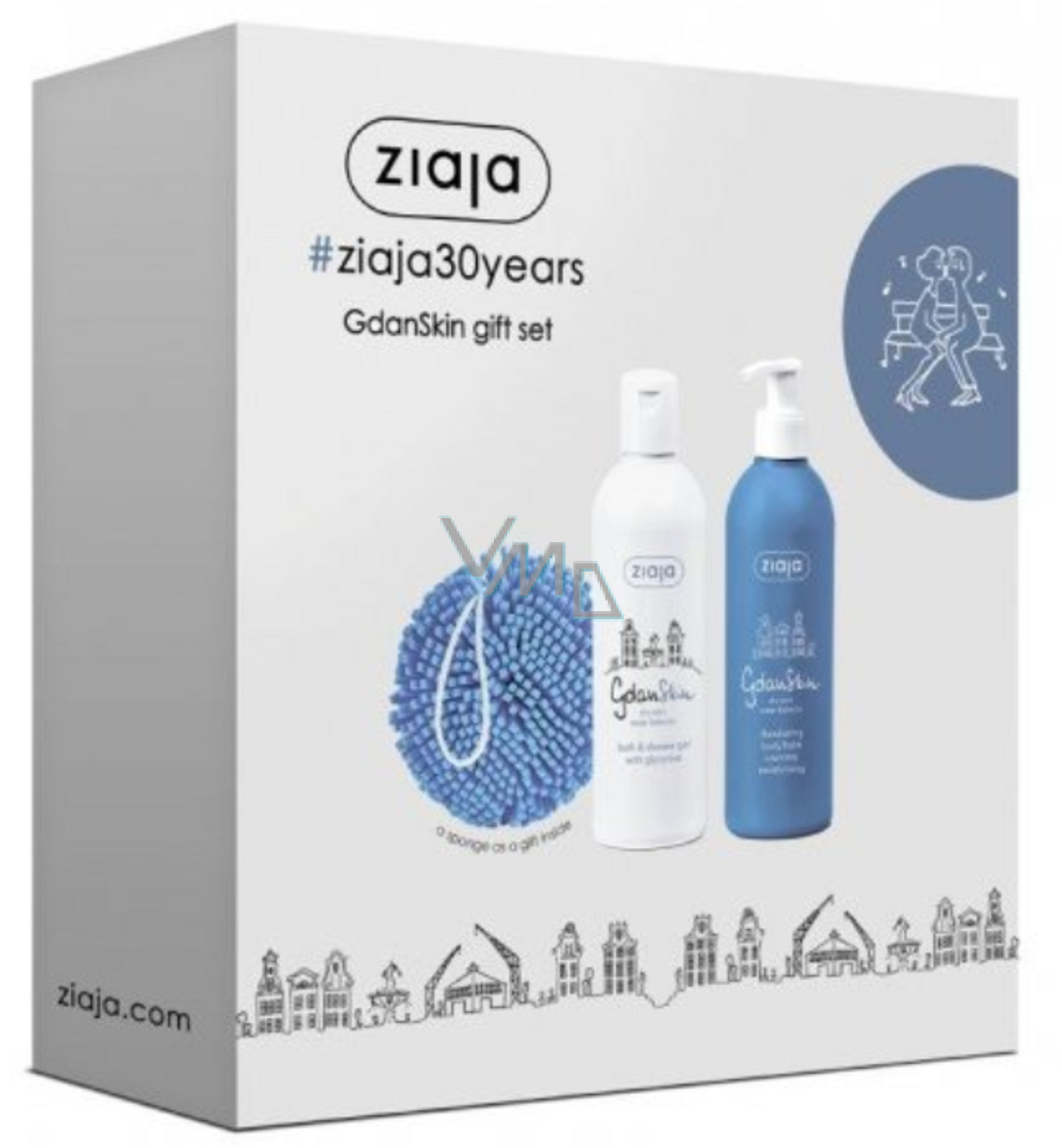 Ziaja GdanSkin Glycerin koupelový a sprchový gel 300 ml + tělový balzám rozsvětlující 300 ml + mycí houba, kosmetická sada