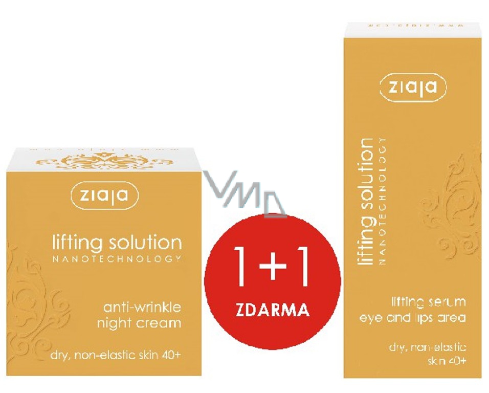Ziaja Lifting Solution noční krém proti vráskám 50 ml + sérum na okolí rtů a očí 30 ml, duopack