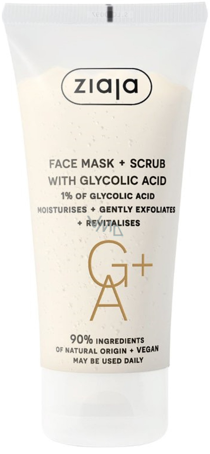 Maska na obličej Ziaja s 1% GA+ kyselinou glykolovou a dalšími látkami kombinující vlastnosti jemného peelingu a masky. Maska je vhodná pro aplikaci štětcem – má jedinečnou, hustou a krémovou texturu.