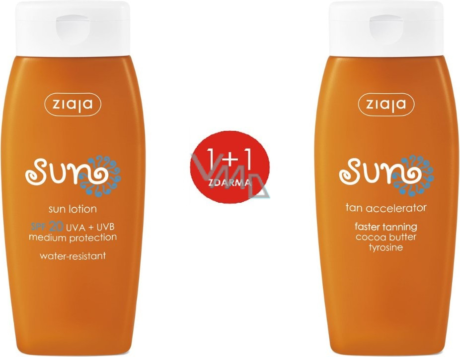 Ziaja Sun SPF 20 wodoodporne mleko do opalania 150 ml + aktywator opalania z tyrozyną 150 ml, duopack