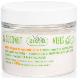 Kombinacja kremowej i puszystej tekstury nawilżającej z naturalnym peelingiem Ziaja Coconut Vibes. Kremowa część zapewnia skórze delikatne nawilżenie, nie pozostawiając na niej tłustego filmu.