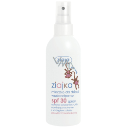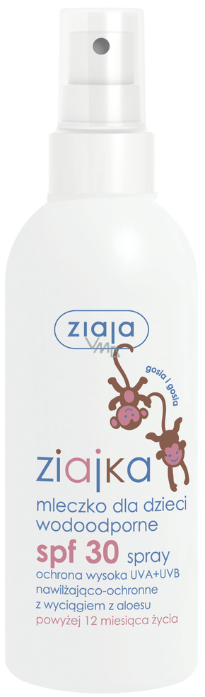 Voděodolné mléko na opalování ve spreji pro děti od 1. roku na obličej a tělo s vysokou ochranou SPF 30 před UVA a UVB zářením. Vytváří na pokožce voděodolnou ochrannou vrstvu. Účinně odráží UVA a UVB paprsky. Chrání pokožku před podrážděním a zabraňuje spálení pokožky. Zklidňuje vysušenou a oslabenou pokožku.