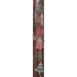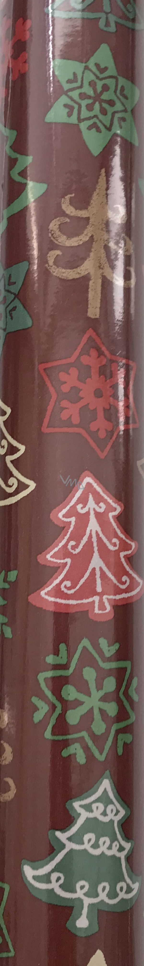 Zoewie Dárkový balicí papír 70 x 500 cm Vánoční hnědý barevné stromky a vločky